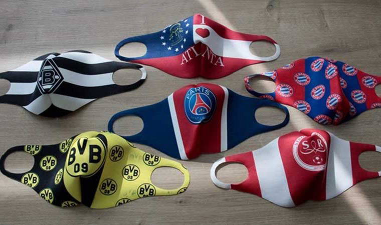 Üzerlerinde takım armalarının yer aldığı farklı tasarımlı maskelerin numunelerini takımlara gönderen firma, üretime hazır bir şekilde gelecek siparişleri bekliyor.