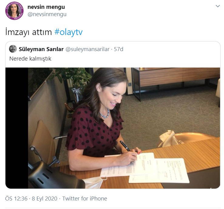 Kanalın Genel Yayın Yönetmenliğini üstelenen Süleyman Sarılar, Nevşin Mengü'nün bugün sözleşmeyi imzalarken fotoğrafını çekerek sosyal medya hesabından "Nerede kalmıştık" notuyla paylaştı.