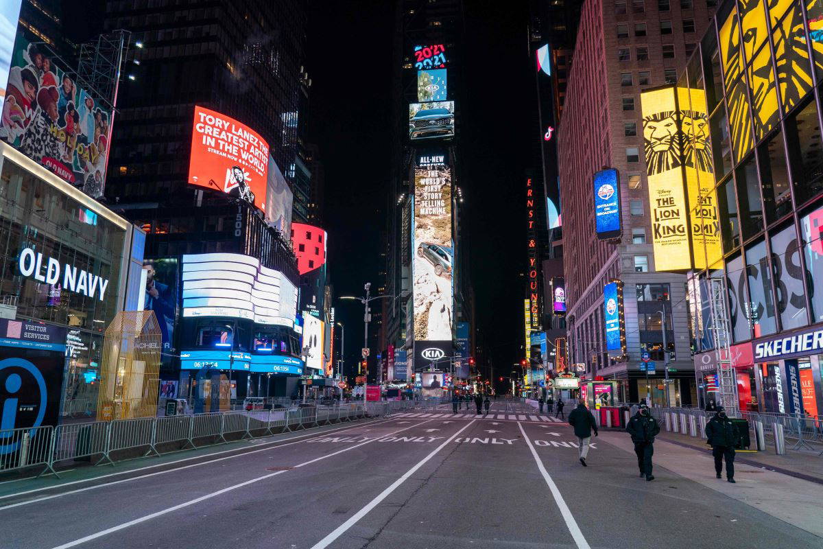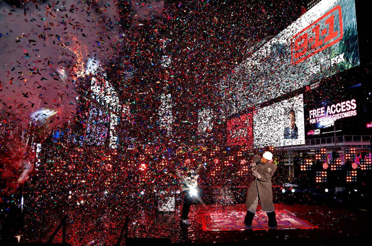 Bu yılki teması Covid-19 salgınıyla mücadeleye atfen "2020 Kahramanları" olan Times Meydanı'ndaki kutlamada gösteriler akşam saat 18.00'de başlayarak 12.30'a kadar sürdü.