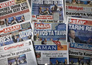 Başbakan Recep Tayyip Erdoğan'ın Davos'taki olaylı panelde İsrail Cumhurbaşkanı Şimon Peres'i "insanları öldürdü" diyerek "suçluluk kompleksi içinde olmakla ve Batı'yı izlemekle yetinmekle suçladıktan sonra panelden fırtına gibi çıktığı"nı yazan dergi, "Sıradan Türkler, (Erdoğan'ın) duygularını paylaştığı gibi görünüyor ve Erdoğan'ı, İstanbul'a dönüşünde bir kahraman gibi karşıladı."