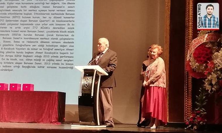 | ‘Bu durdurulamaz bir akıntı’ Semiha Berksoy Ödülü’nü Zeliha Berksoy ile birlikte takdim eden İlber Ortaylı törende bir konuşma yaptı. Ortaylı, devletten gördükleri destek bakımından “Bugünün sanatçıları 1960’lı yılların sanatçıları kadar talihli değiller” dediği konuşmasında şu ifadeleri kullandı: |