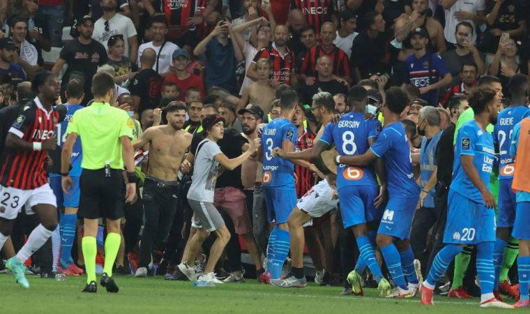 Fransa Ligue 1'in üçüncü haftasında oynanan Nice - Olimpik Marsilya maçı, ev sahibi ekibin taraftarlarının sahaya girmesi nedeniyle yarıda kaldı.