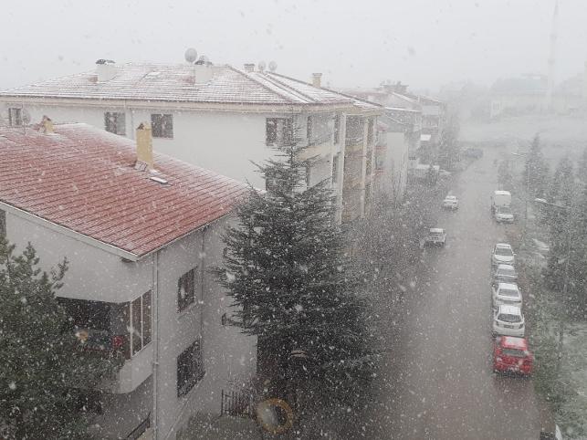 Bursa'nın İznik ilçesinde kar yağdı. Öğle saatlerinde başlayan kar yağışı yüksek kesimlerde etkisini sürdürüyor.