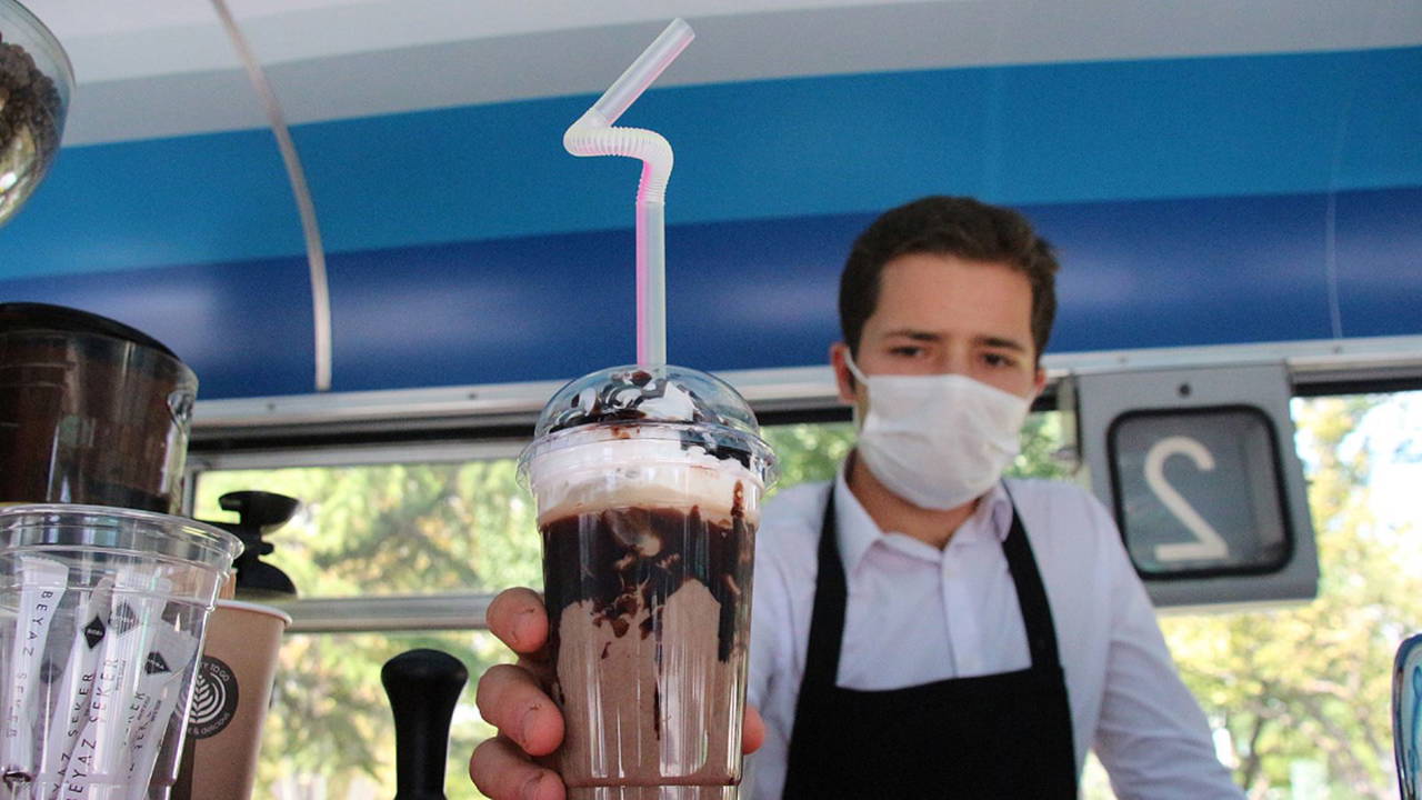Erdem, sıcak ve soğuk içecek sevisi bulunan kafede müşterilerin, bol bol anı fotoğrafı çektiğini belirterek, şunları belirtti: