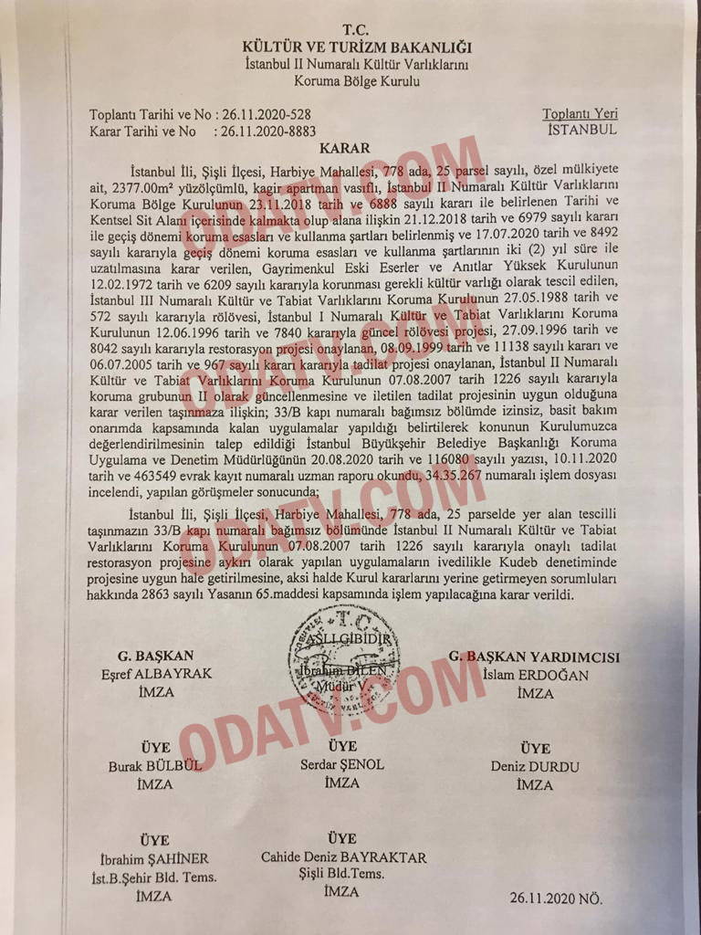 Kurul ayrıca tadilat projesine uygun hale getirilmesini istedi.