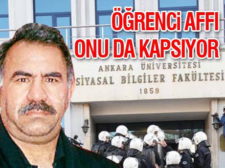 Üniversite affı ile fakültelerine dönecek öğrenciler arasında terör örgütü ele başı Abdullah Öcalan’ın da olduğu ortaya çıktı. 1971 yılında İstanbul Üniversitesi Hukuk Fakültesi’ne giren Öcalan 1 yıl sonra Ankara Üniversitesi Siyasal Bilgiler Fakültesi Kamu Yönetimi bölümüne geçiş yaptı. Üniversitede çeşitli eylemlere katılan ve bildiri dağıtan Öcalan, 1972 yılında bir süre Mamak Askeri Cezaevinde kaldı. 1978 yılında PKK’yi kurmak için Diyarbakır’a giden Öcalan, daha sonra okula devam etmedi. Ancak, SBF’de 993 nolu öğrenci olan Öcalan’ın 1978 yılında değil devamsızlık nedeniyle 1986 yılında üniversite kararıyla öğrenciliğine son verildiği öğrenildi. TBMM’deki affın kapsamının “her ne sebeple olursa olsun” 12 Eylül 1980’den sonra atılanları kapsaması ile Öcalan’ın da bu aftan yararlanma olasılığını gündeme getirdi.