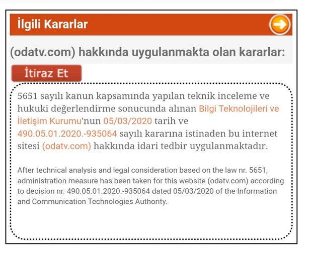 2007 yılında kurulan http://Odatv.com’a, BTK tarafından verilen idari tedbir kararı gereği erişim sağlanamamaktadır.