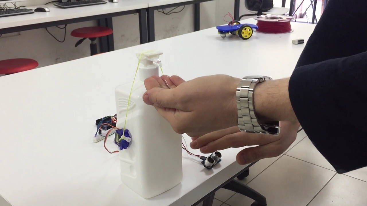 Keşan’da özel bir eğitim kurumunda eğitim gören öğrenciler, temizlik için kullanılan dezenfektanlarından, el değmeden dezenfekte ürünlerinin alınması için özel bir tasarım geliştirildi. Sensör yardımı ile çalışan proje, sosyal medya hesapları tarafından paylaşılarak 3 milyon kişiye ulaştı.