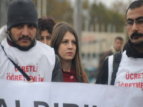 Taksim meydanında toplanan yaklaşık 20 kişilik öğretmen adayı, “Ücretli öğretmenlik kaldırılsın, öğretmenler atama istiyor” yazılı pankart açtı.