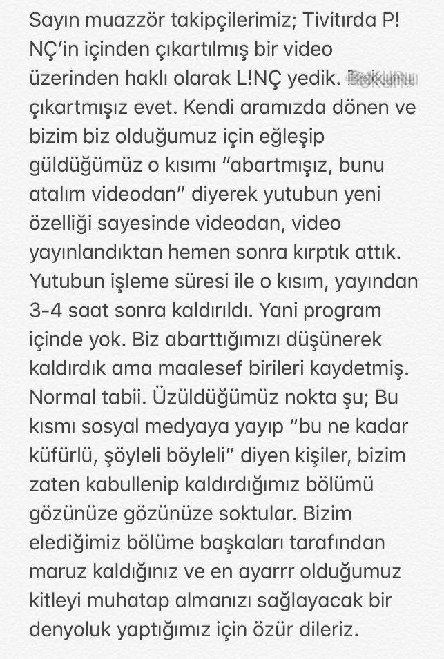Uğur kişisel twitter hesabından videoyla ilgili 'özür' mesajı paylaştı.