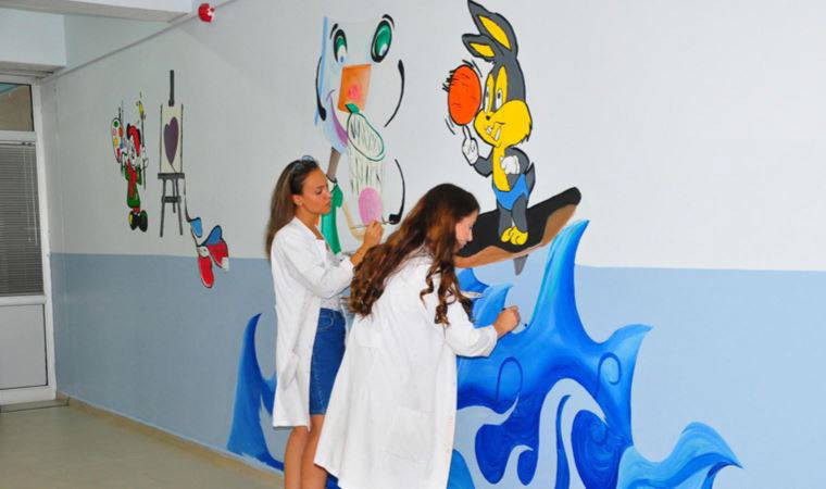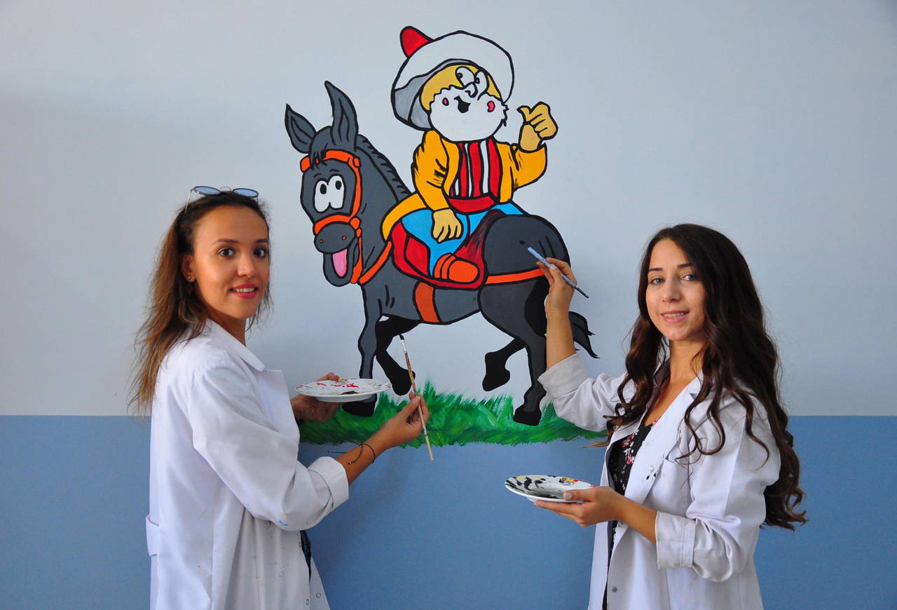 Gönüllü öğretmenler, proje kapsamında okulun iç duvarlarına Türk masal kahramanlarını ve çizgi film karakterlerini çizdi. Çizimlerle süslenen duvarlar, bambaşka bir görünüme kavuşarak renklendi.