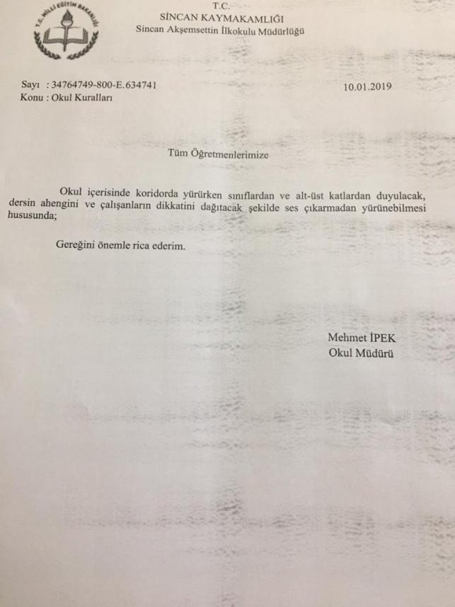 Okul müdürünün öğretmenlerin topuklu ayakkabı giymemesi için yazdığı resmî yazı: