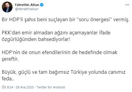 "Bir HDP'li şahıs beni suçlayan bir "soru önergesi" vermiş.