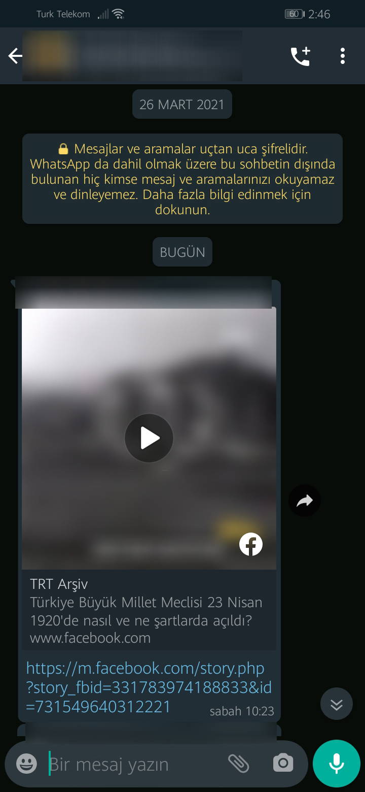 Odatv'de yer alan habere göre; okulun tarih öğretmeninin öğrenci grubunda 23 Nisan’ın önem ve değerini anlatan Mustafa Kemal Atatürk ile ilgili videoyu WhatsApp grubunda paylaşmasına bir kişi karşı çıktı. "Burası ödev grubu değil mi Mustafa Ke malın ne işi var burada" ifadelerini yazan F.G.’ye tarih öğretmeni yanıt verse de "Öğretmenlik yapın beyin yıkamayın" tepkisiyle karşılaştı.