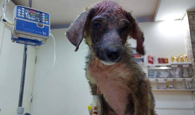 Uyuz hastalığıyla birlikte bronşit olan ve hastalıkları yüzünden tüyleri dökülerek, zayıflıktan güçsüz düşen yavru köpek, bir köşede ölmek üzereyken hayvanseverler tarafından bulundu. Veterinere getirilerek, tedaviye alınan yavru köpek, tedavi sürecinin ardından hayata yeniden tutundu.
