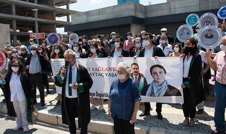 İzmir Baro Başkanı Av. Özkan Yücel burada yaptığı açıklamada, Aytaç Ünsal ve Ebru Timtik’in sadece adil yargılanma talebiyle ölüm orucuna başladıklarını ifade ederek, “Bu ülkedeki bütün insanların hak ettiği anayasadan, uluslararası sözleşmelerden, kanundan kaynaklanan haklarını alabilmek için, bu konuda seslerini duyurabilmek için son seçenek olarak bedenlerini ölüme yatırmayı tercih ettiler. Tüm bu hukuksuzlukları, yaşanan adaletsizliği, yaşanan adil yargılanma hakkı ihlalini bizler de gördük, bizler de şahidiz. Bu nedenle bu kadar açık ve net söylüyoruz, meslektaşlarımızın adil yargılanma hakkı ihlal edilmiştir” dedi.
