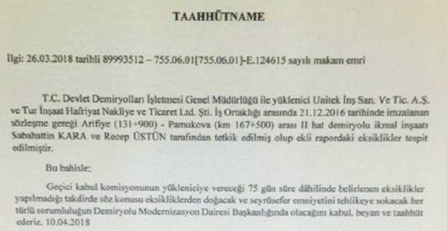 18 Haziran’da Sakarya Arifiye’de durdurulan Ankara-İstanbul YHT seferinde makinistlerin dikkati ve bölgeyi önceden bilmeleri sayesinde raylar üzerindeki su fark edilerek tren durdurulmuş büyük bir faciadan dönüldü. Ortaya çıkan taahhütnameye göre trenin olası kazadan kurtulduğu, menfezin hatalı inşa edildiği biliniyordu ve TCDD kazanın sorumluluğunu üstüne almış durumda.