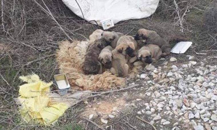 Konya-Aksaray yolunun 70'inci kilometresinde bulunan kum ocakları civarında çuvaldan köpek havlaması duyan sürücü, aracını durdurdu. Çuvalı açan sürücü, içerisinde 9 yavru köpek buldu.