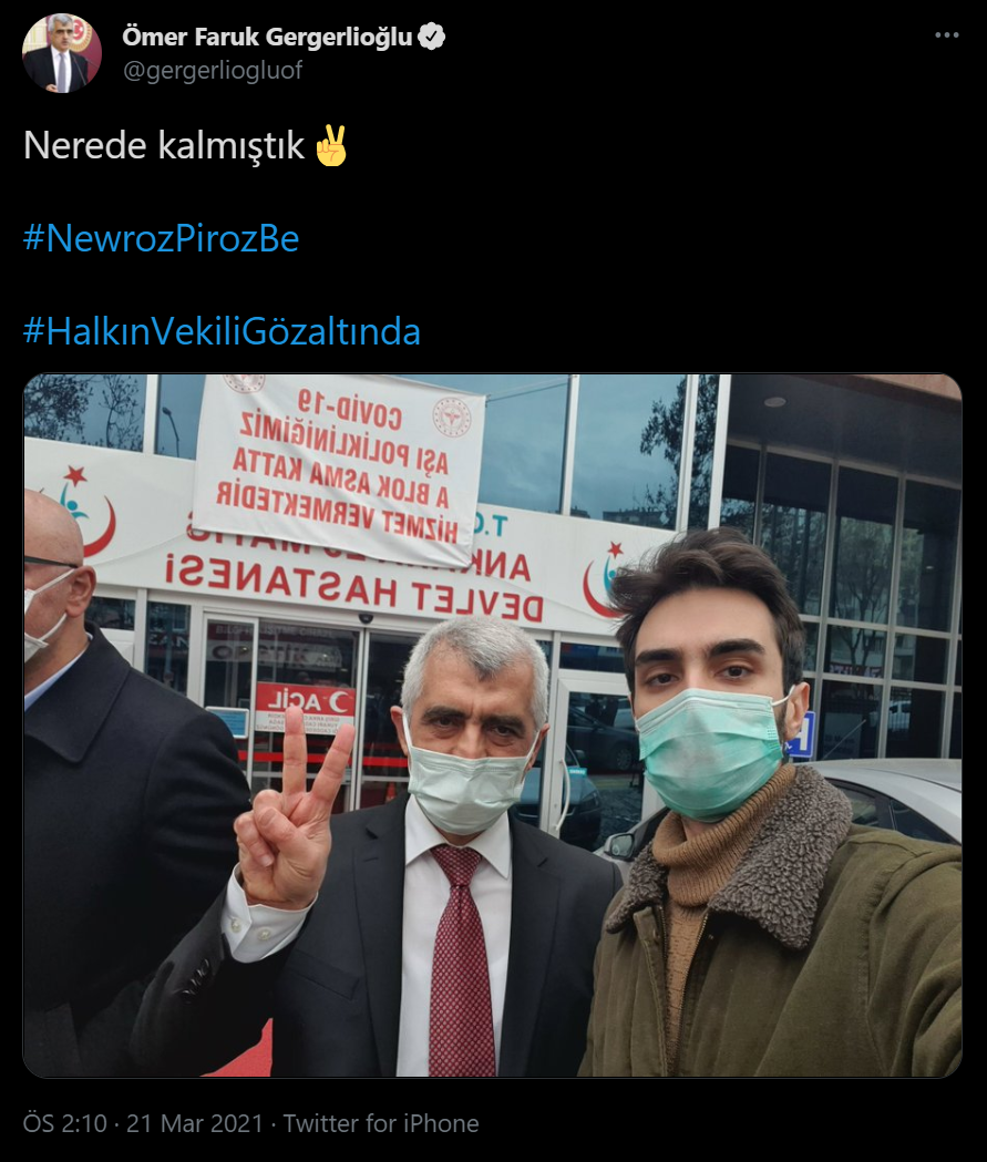 Gergerlioğlu serbest bırakılmasının ardından sosyal medya hesabından oğluyla birlikte fotoğrafını paylaşarak, "Nerde kalmıştık?" mesajını paylaştı.