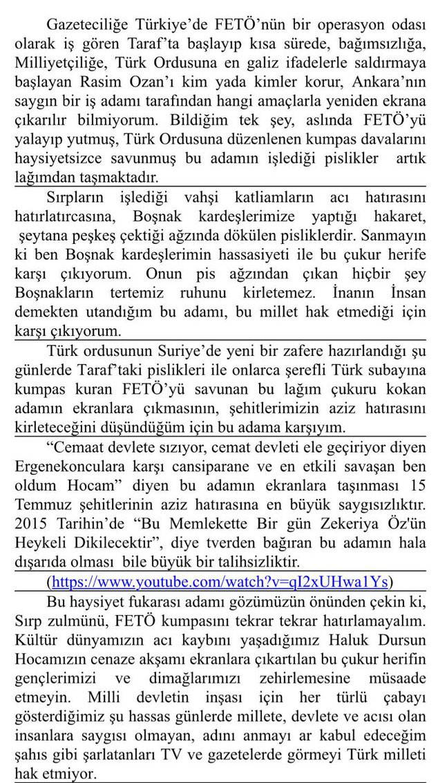 Beyaz TV'deki spor programında sarf ettiği sözlerle Boşnaklara hakaret ettiği iddiasıyla "Halkın bir kesimini sosyal sınıf din mezhep cinsiyet, bölge farklılığına dayanarak alenen aşağılama" suçundan yargılanan Rasim Ozan Kütahyalı, geçtiğimiz günlerde Boşnakların ekranlara dönmemesi için kampanya başlattığı Beyaz TV'de yayınlanan Derin Futbol programına dönmüştü. Kütahyalı'nın, Beyaz TV ekranlarına geri dönmesi kamuoyundan tepki gördü. Tepki gösterenler arasında aynı zamanda Boşnak olan MHP Kocaeli Milletvekili Saffet Sancaklı da yer aldı.