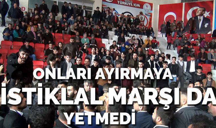 Konuşmaların ardından salonda iki grup arasında bilinmeyen nedenle kavga çıktı. Olay yerine çok sayıda polis sevk edildi. Bu sırada bir grup, görüntü alan gazetecileri engelleyip görüntüleri sildirmeye çalıştı. Sunucu, kavgayı sonlandırmak için İstiklal Marşı’nı okumaya başladı ancak taraflar kavga etmeye devam etti. Tarafları polisler güçlükle ayırdı.