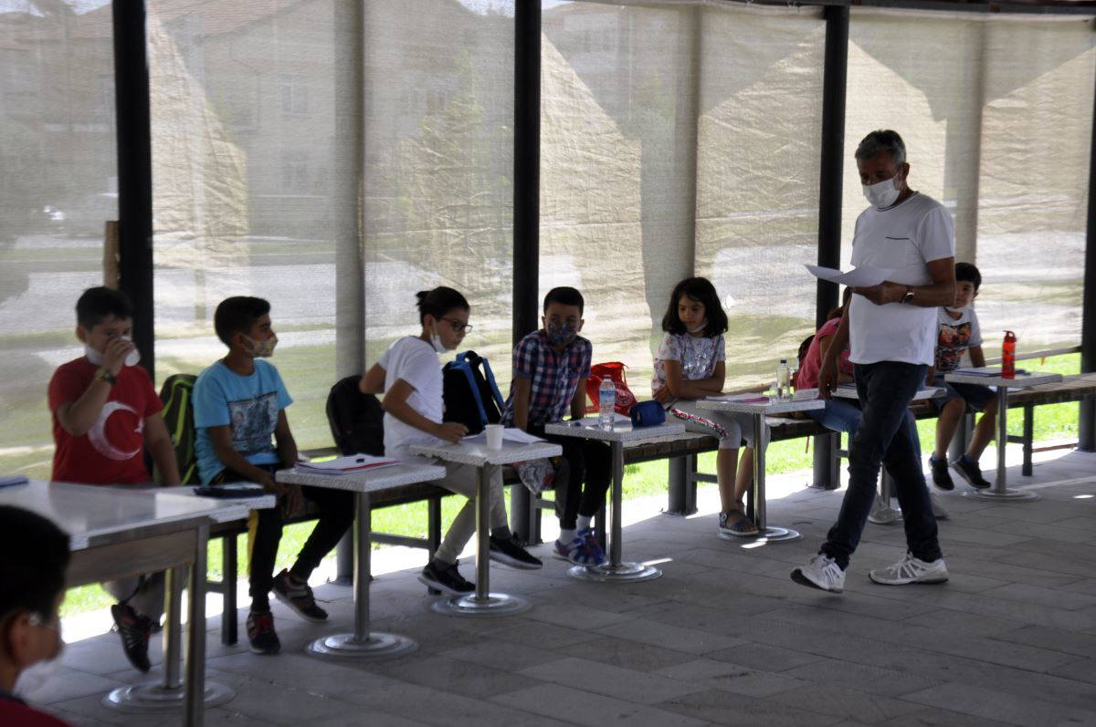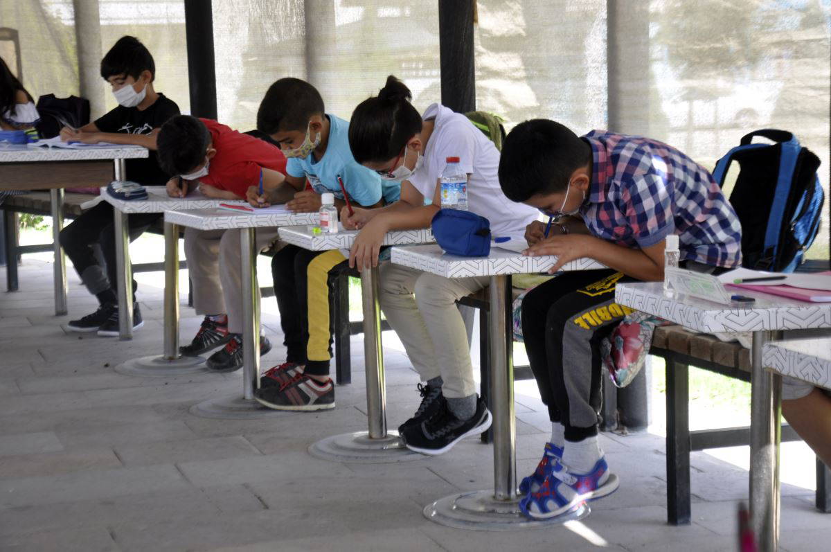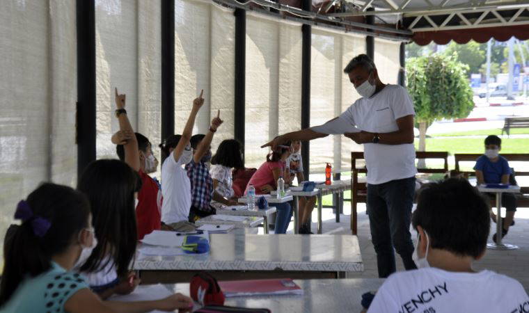 Parktaki çay bahçesinden de öğrencilerin kullanması için aldıkları masalarla adeta sınıf ortamı oluşturan Yılmaz, öğrencilerine açık alanda ders anlattı. Aylar sonra yeniden arkadaşlarıyla bir araya gelen öğrenciler de ders dinledi. Açık alandaki dersin bundan sonra da süreceği öğrenildi.