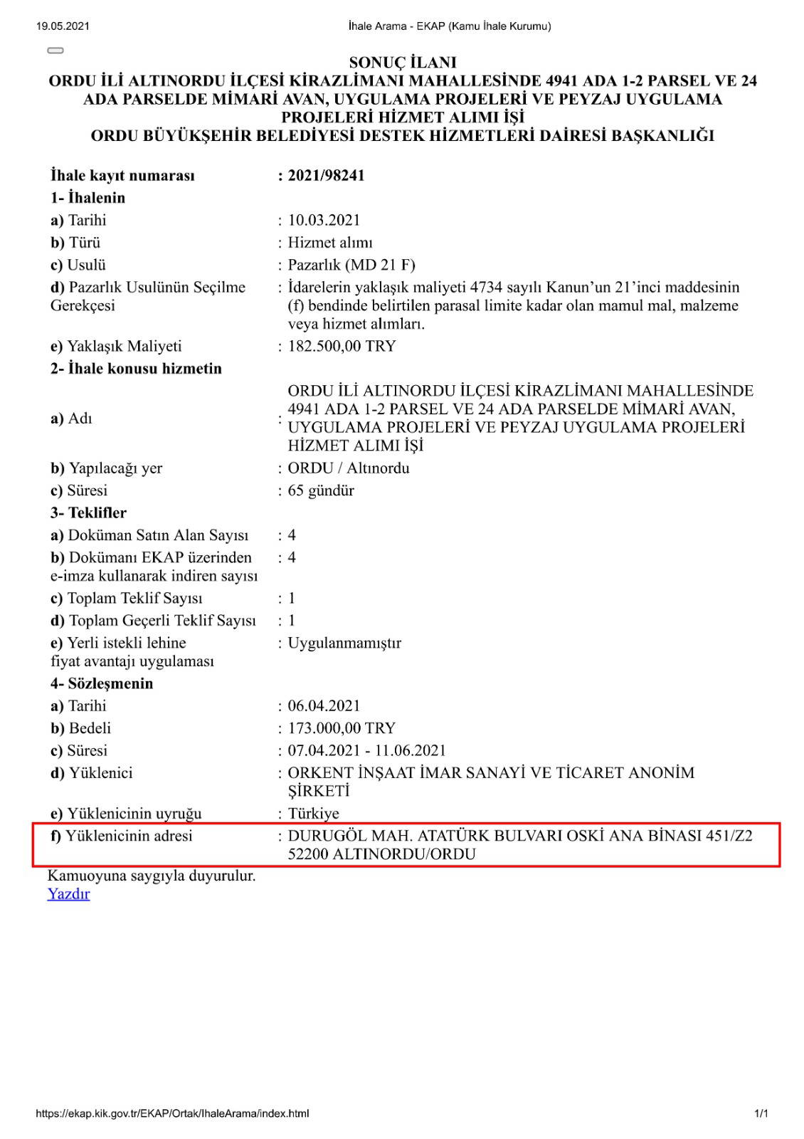 "Projeyi ORKENT İnşaat hazırlıyor. Bu şirket, 2020 Aralık ayında kurulmuş. Kuruluşundan 3 ay sonra Mart 2020’de yine 21/B pazarlık usulüyle belediyeden 173 bin lira verip, bu Belde evlerinin yerine yapılacak olan projeyi projelendiriyor"