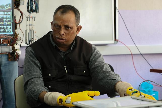 Evlerindeki tüp patlaması sırasında 3 yaşındayken iki elini kaybettiğini belirten evli ve 3 çocuk babası Erdinç Demirdöğen, "Emeği geçen herkese teşekkür ediyorum. Çok güzel bir proje olmuş. Büyük kolaylıklar sağlıyor. Bu protez el sayesinde bardağı tutabiliyorum, kaşığı tutabiliyorum. Kendi hayatımı bir başkasından yardım almadan sürdürebilirim. Bu çok güzel bir duygu. Öğrencilerimiz bedensel engelli vatandaşları düşünerek bir şeyler yapmaları çok güzel bir şey" diye konuştu.