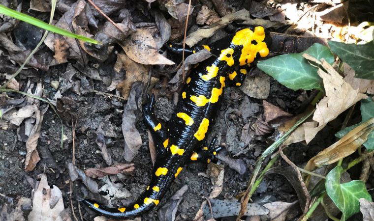 Osmaniye'de mesire alanındaki yamaçlarda nesli tükenme tehlikesi altında olan sarı benekli semender görüntülendi.