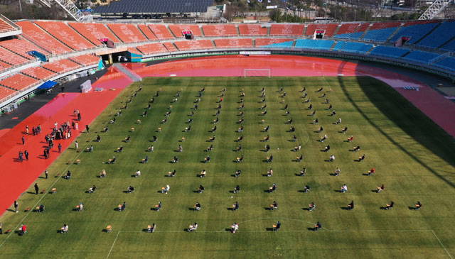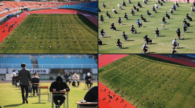 Güney Kore'de, üniversite sınavı 10 Nisan'da koronavirüs nedeniyle Ansan'daki bir stadyumda yapılmıştı.