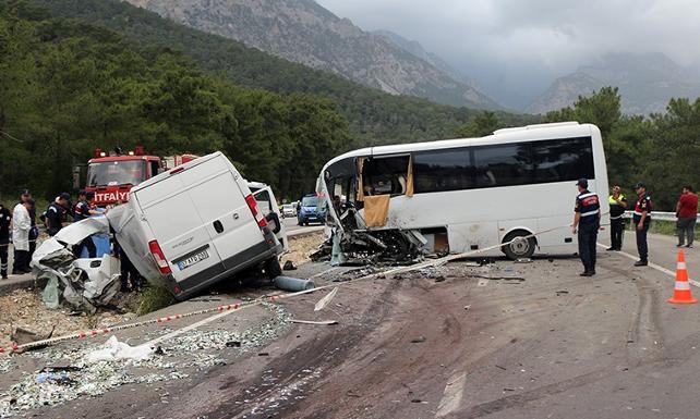 Kazada, minibüs sürücüsü yaşamını yitirdi, 17 kişi yaralandı. Yaralarılar ambulanslarla Antalya ve Kemer'deki hastanelere sevk edildi. Yaralılardan birinin hayati tehlikesinin bulunduğu belirtildi.