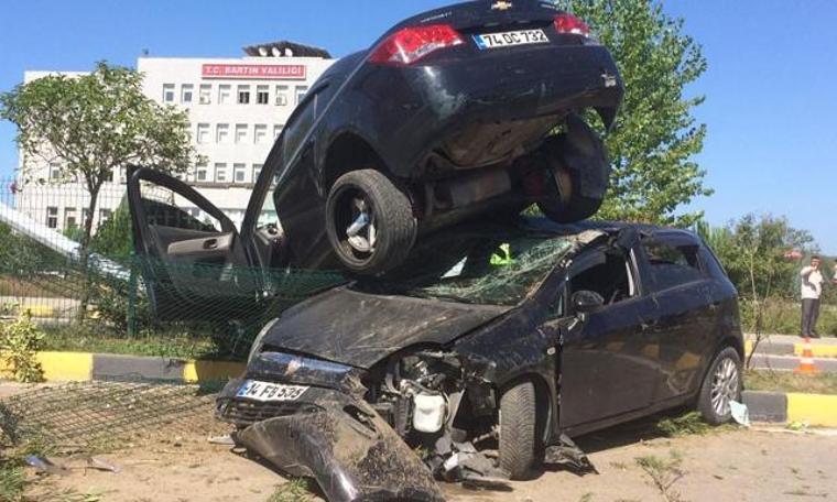Kaza, saat 15.30 sıralarında, Kemerköprü Mahallesi Çatmaca kavşağında meydana geldi. Ali Akdere (43) yönetimindeki 14 DC 732 plakalı otomobil, kontrolden çıkıp, Sercan Yücekaya'nın (28) kullandığı 14 FB 535 plakalı otomobile arkadan çarpıp, üzerine çıktı. Kazada sürücüler ile araçlarda bulunan 3 aylık Zümra Arslan, Zekiye Tezcan (55), Seyfullah Ayaz Yaman (4), Rümeysa Akdere Arslan (23), Poyraz Miraç Yücekaya (6), Nurten Yaman (29), Durmuş Yaman (68) ile Şerife Akduman (81) yaralandı. İhbarla gelen İl Afet ve Acil Durum Müdürlüğü (AFAD) ve Bartın Belediyesi arama- kurtarma ekipleri, yaralıları sıkıştıkları yerden çıkardı. Sağlık görevlileri, 10 yaralıyı ambulanslarla çevredeki hastanelere kaldırdı. Tedaviye alınan yaralıların sağlık durumunun iyi olduğu belirtildi. Kaza nedeniyle bir süre trafiğe kapalı kalan yol, araçların kaldırılmasıyla yeniden açıldı. Kazayla ilgili soruşturma başlatıldı.