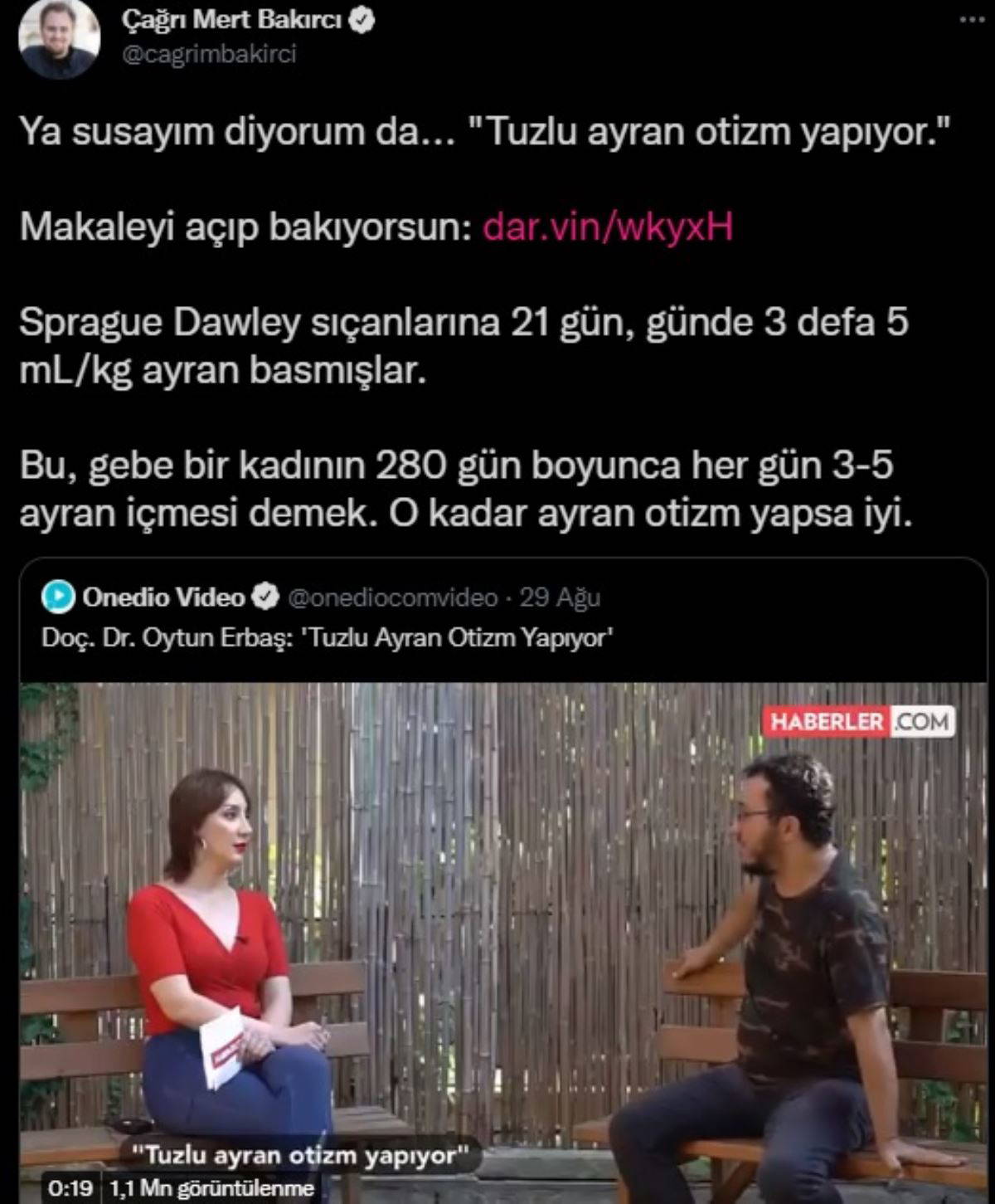 Haberler.com'dan Nihal Gülbaş'ın sorularını yanıtlayan Doç. Dr. Oytun Erbaş, son olarak "Tuzlu ayran otizm yapıyor" açıklamasında bulundu.