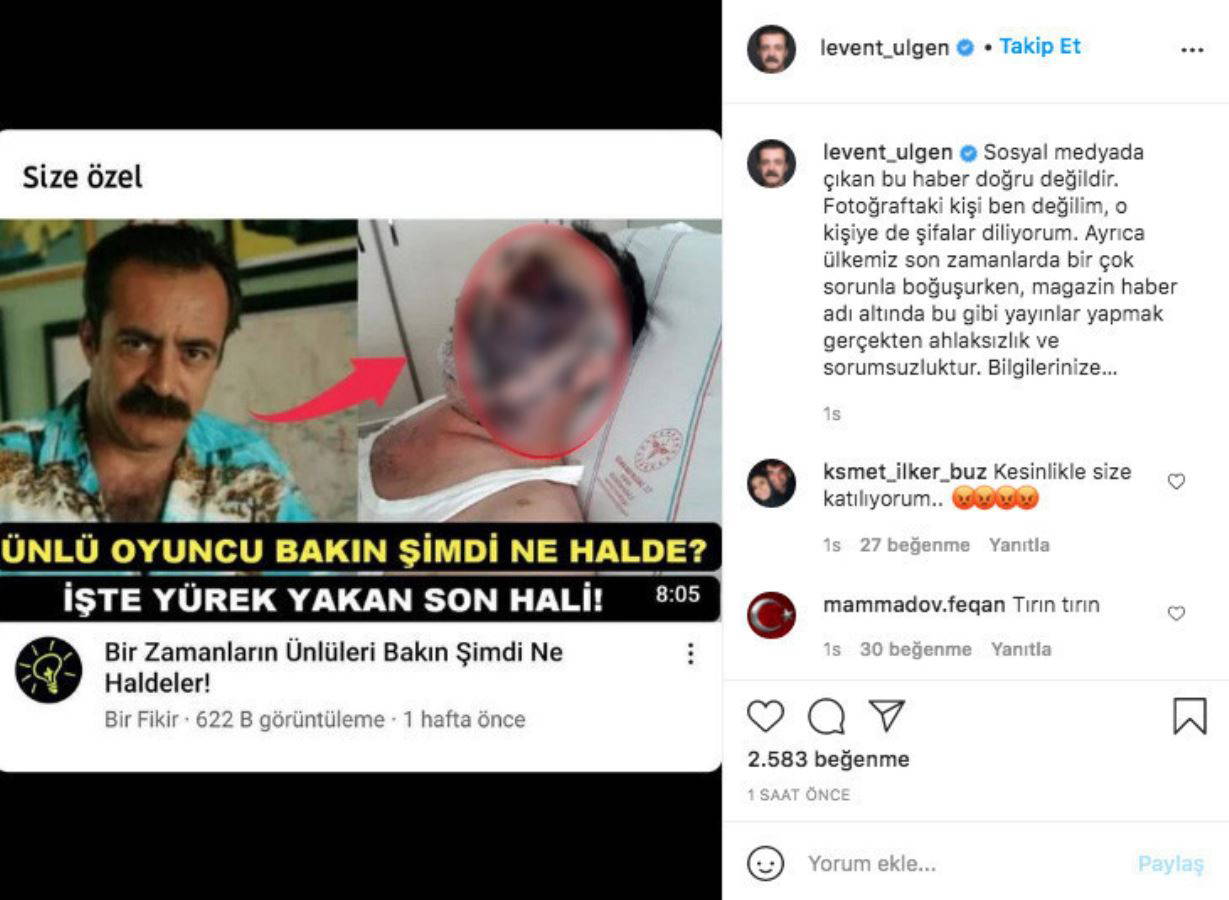 Ünlülerin sağlık durumlarıyla ilgili çıkan asparagas haberlere bir yenisi daha eklendi. “Ünlü oyuncu bakın şimdi ne halde? İşte yürek burkan hali” başlığıyla sosyal medyada yayılan fotoğrafa oyuncu Levent Ülgen isyan etti.