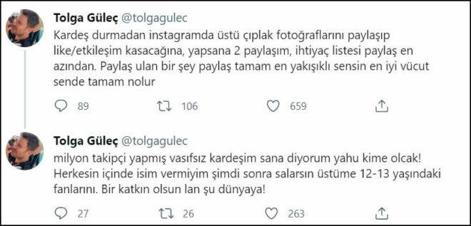Can Yaman’ı eleştirenler arasında oyuncu Tolga Güleç de vardı. Güleç sosyal medya hesabından isim vermeden Can Yaman’a tepki gösterdi.
