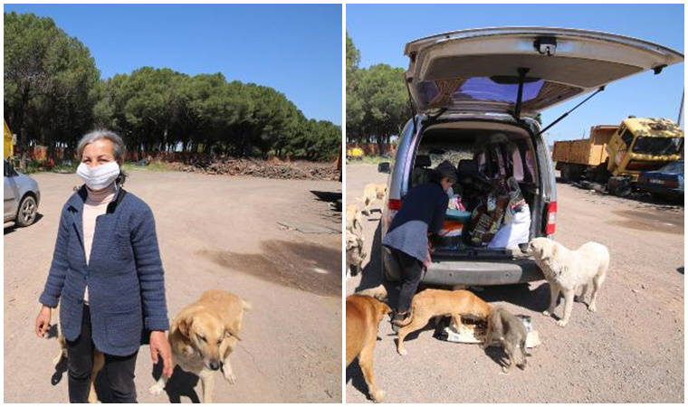 Ayvalık'ın Altınova Mahallesi'nde yaşayan ve sokak hayvanlarını besleyen, emekli bankacı Mahmure Meral, sokağa çıkma yasağı olan günlerde de özel izin alarak, besleme çalışmalarına devam ediyor.