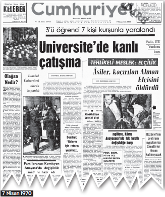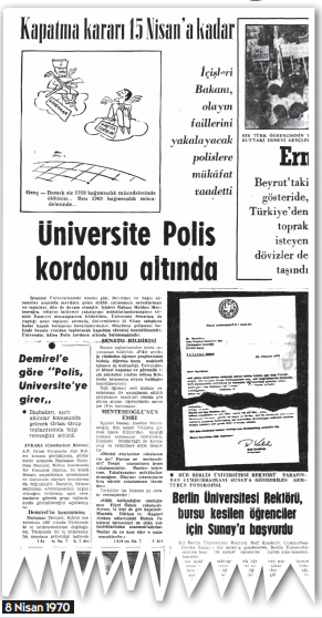 13 Mart günlü haberimizde, üniversitelerin öğretim üyeleri, Ümit Doğanay, Tarık Zafer Tunaya, Aytekin Atalay.. Hükümet odaklı üniversiteler reform tasarısını eleştiriyorlar. Ankara kaynaklı benzer çıkışların ardından, polis öğrencilere doğrudan silah kullanıyor, öğrencilerini korumaya çalışan fen faktültesi dekanı ağır şekilde hırpalanıyor, çok sayıda öğrenci tutuklanıyor. 19 Mart günlü haberlerimizin içinde 5 öğrencinin daha tabanca ile yaralanması bilgisi var. Öğretim üyeleri polisin fakültelere girmemesi çağrılarını yapıyor.
