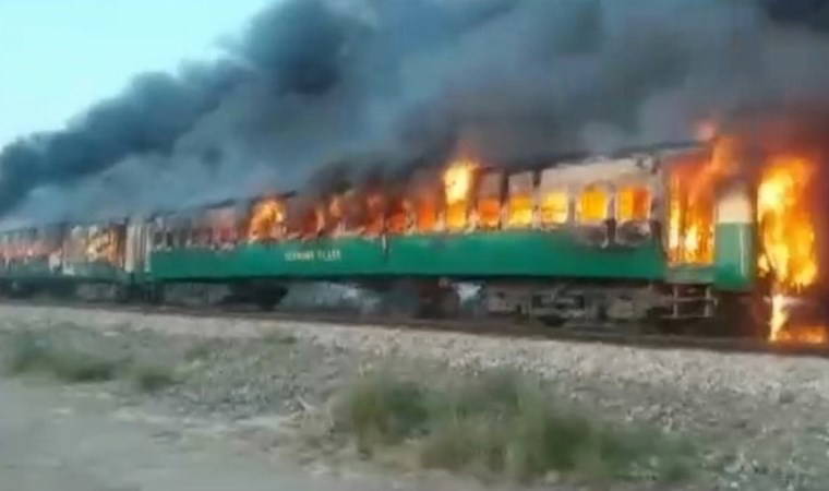 Pakistan'ın Karaçi şehrinden Lahor'a giden trende çıkan yangında en az 65 kişi öldü.