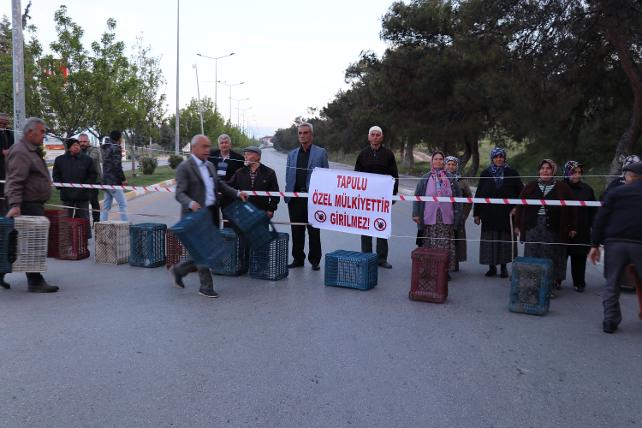 Hak sahibi olduğunu belirten Bayram Tekin, "Biz kendi mülkiyetimizi kapattık. Karayolundaki ulaşımı kapatmadık. Kendi arsamız, 60 yıldır işgal ediliyor. Bütün mirasçılarla beraber, özel mülkiyetimizi kapattık. Biz sadece hakkımızı istiyoruz" dedi. Karayolundaki alanında kendilerine ait olduğunu söyleyen Fadime Acar ise "Biz kendi yerimizi kapattık. Hakkımızı istiyoruz. Burası bize dedemizden miras kaldı. Amacımız yola engel olmak değil. Yıllardır yolu kullanıyorlar. Biz de mağduruz. Hakkımızı versinler" diye konuştu.