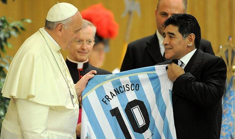Maradona, Papa'nın 2014'te Roma'da organize ettiği "Barış İçin Dinlerarası Maç" kadrosunda yer almış ve Papa ile görüşmüştü. Papa Maradona'dan şöyle söz etti: