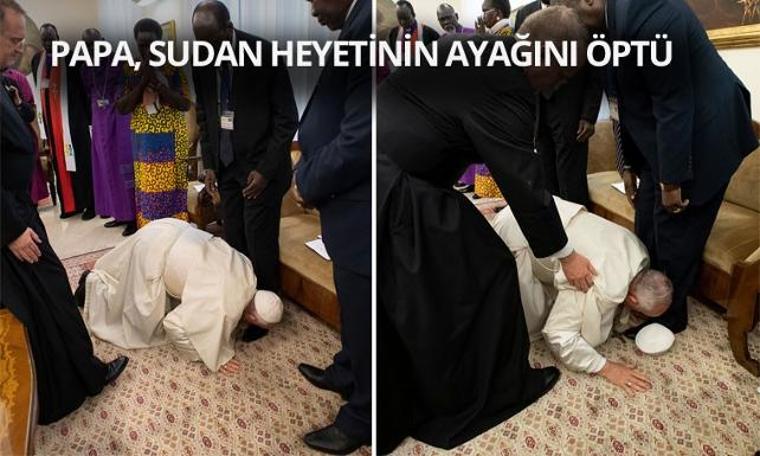 Papa Francis, barışın devam etmesi amacıyla Vatikan'da kabul ettiği Güney Sudan heyetinde bulunan liderlerin ayağını öptü.