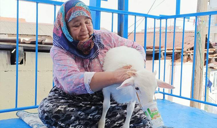 İzmit'in Yenidoğan Mahallesi’nde yaşayan, 4 çocuk ve 6 torun sahibi Fatma Gökdemir, annesi ölen kuzusuna torunlarıyla birlikte evde bakmaya başladı. ‘Paşa’ ismini verdiği 3 aylık kuzusuna ‘torunum’ diyen Gökdemir, koronavirüsten korumak için de ayran kutusundan maske yaptı. Kuzunun ağzını sokaklarda her yere sürdüğünü söyleyen Gökdemir, 'Paşa'yı virüse karşı korumak amacıyla maskesiz olarak dışarı çıkarmıyor.