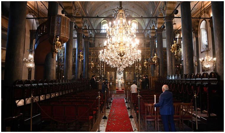 Reuters, Rum Ortodokslarının İstanbul'daki St. George Kilisesi'ndeki boş törenini uluslararası kamuoyuna aktardı.