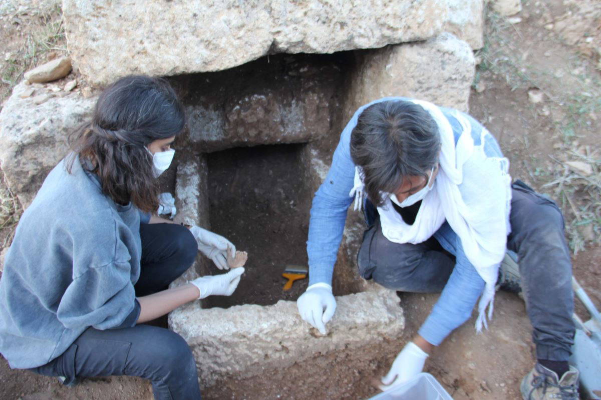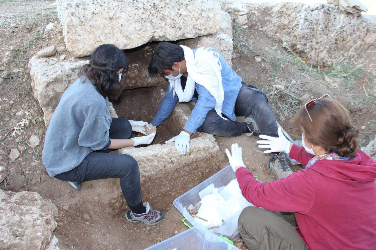 Arkeologlar, bir kadın, bir erkek ve bir çocuğa ait iskeletlerin yanında bulunan sikke ve diğer eşyalardan, mezarın 1600 yıllık olduğunu ifade etti.