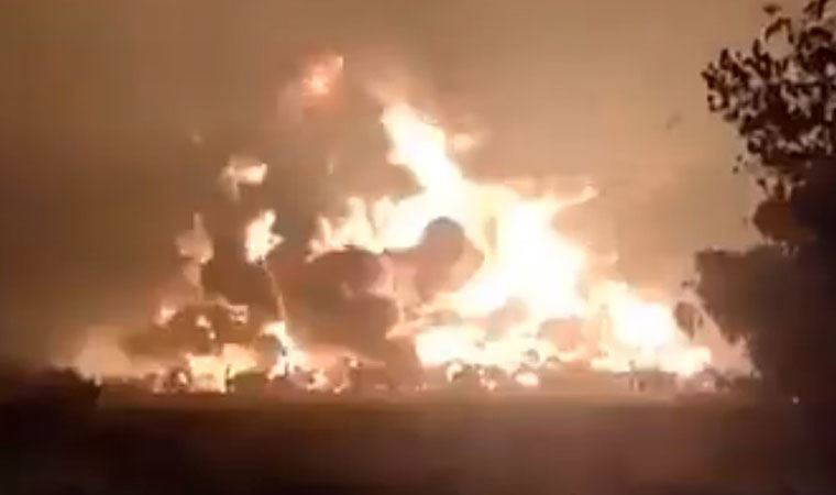 Patlamanın nedeni henüz bilinmezken, çevrede yaşayanlar tarafından çekilen görüntülerde alevlerle birlikte yükselen büyük duman bulutlarının gökyüzünü kapladığı görülüyor.