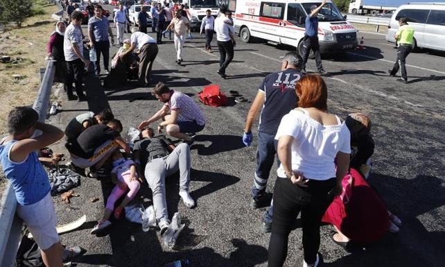 Kaza, saat 16.00 sıralarında Çevreyolu'nda Bağlum Kavşağı mevkiinde meydana geldi. Mehmet Y. yönetimindeki 37 SK 695 plakalı minibüs, sürücüsünün kontrolünden çıkarak bariyerlere çarptı. Minibüs, daha sonra savrularak takla attı. Kazada 4'ü çocuk 16 kişi yaralandı. Haber verilmesiyle çok sayıda ambulans kaza yerine sevk edilirken, yola savrulan ve acı içinde kıvranan yaralılara ilk müdahaleyi çevredekiler yaptı. Daha sonra gelen sağlık ekipleri, yaralılara müdahale etti. Minibüs sürücüsü, 4 çocuk ve diğer yaralılar, sedyelerle ambulanslara taşındı. Yaralılar ambulanslarla hastanelere kaldırılarak tedavi altına alındı.