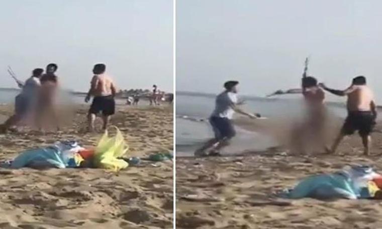 Sahildeki bir vatandaş tarafından kaydedilen görüntülerde, görevli ile çıplak adamın tartıştığı, ardından kavga etmeye başladığı; kavgaya bir başka kişinin de dahil olup, çıplak adamı darp ettikleri görülüyor.