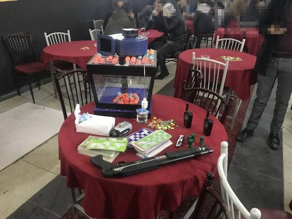 Düzenlenen operasyonda tombala makinesi ile çok sayıda tombala kartı ve pulu ele geçirildi. İş yeri çevresinde bulunan güvenlik kameralarını polisin gelişini görmek için taktıkları ortaya çıktı. Kumar oynatılan iş yeri sahiplerinin ise dışarıda bekleyen muhbirle polisin gelişini telsizle haberleştikleri belirlendi. Polis, içeride bulunan ve tombala oynayan 35 kişiye idari işlem yaparken, kumar oynatılmasına yer temin eden işletmeci ise gözaltına alınarak polis merkezine götürüldü.