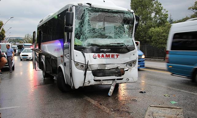 Yapılan incelemelerin ardından kazaya karışan servis aracı ve belediye otobüsü olay yerinden çekildi.