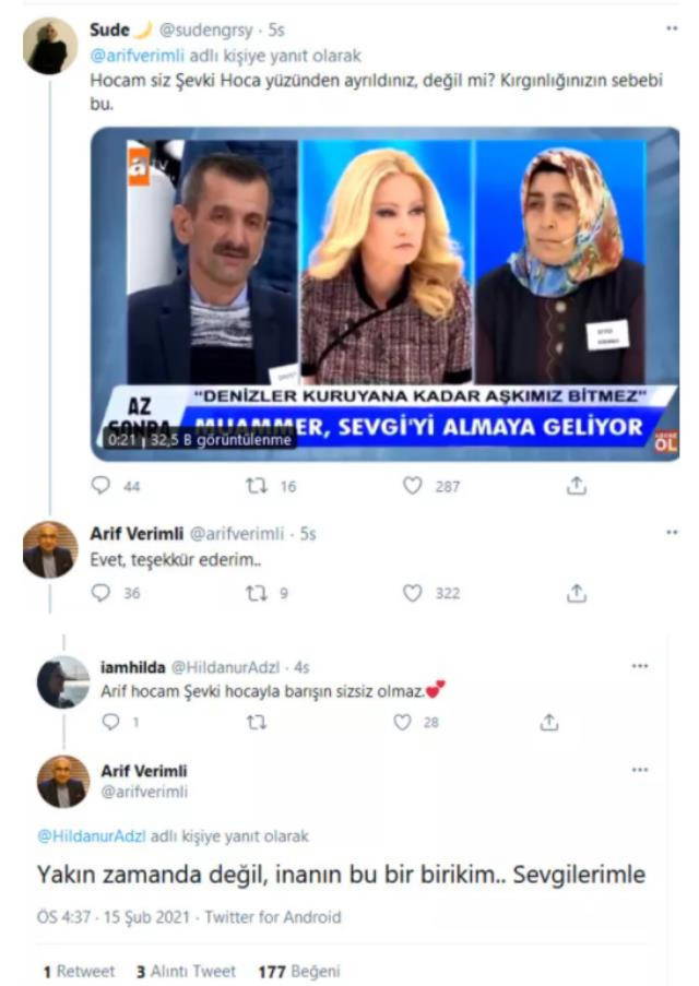 Ancak Verimli'nin takipçisinden gelen , "Hocam siz Şevki hoca yüzünde ayrıldınız değil mi? Kırgınlığınızın sebebi bu." yorumu üzerine, "Evet, teşekkür ederim" diyerek verdiği cevap dikkat çekti.
